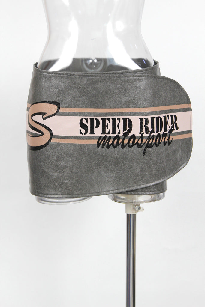 Faux Leather Velcro Wrap Graphic Mini Skirt