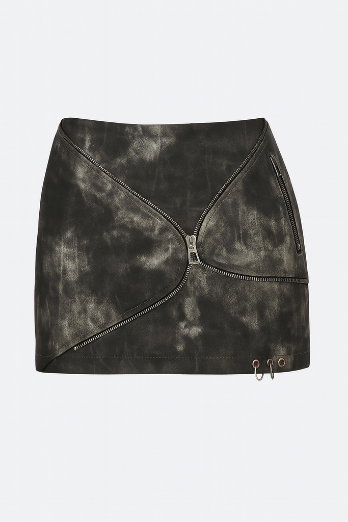 Faux Leather Velcro Wrap Graphic Mini Skirt